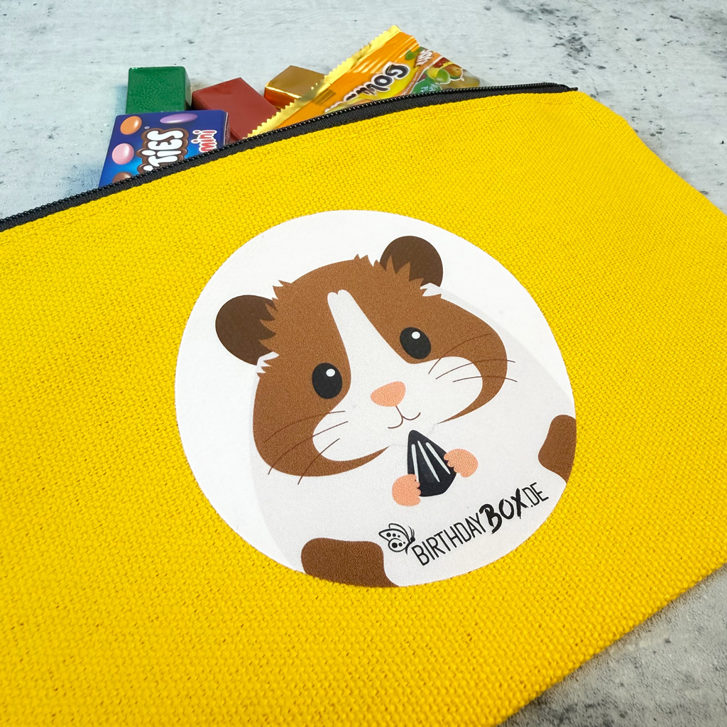 Schenke den Kindern zum Abschluss des Kindergeburtstags eine liebevolle Überraschung! Fülle die Mümmel Geschenktasche mit kleinen Hasen-, Hamster- oder Meerschweinchen-Überraschungen und zaubere ein Lächeln auf ihre Gesichter. Die Gelbe Baumwolltasche ist handbedruckt mit Hamster Harry aus der Mümmelbox – nachhaltig, süß und unvergesslich!